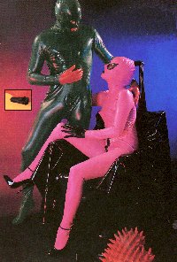 Hautenger Ganzanzug mit 2-Wege-Reissverschluss durch den Schritt in Latex mittel hellblau , rot oder schwarz in den Grössen 36 bis 50.