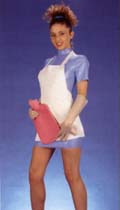 Optionen: Schürze klein in Latex weiss/rosa mittel mit Rüschen in Einheitsgrösse. Schwesternhaube in Latex weiss mittel in Einheitsgrösse. Bettflasche aus Plastik. Handschuhe aus Latex getaucht mittel in weiss , gelb , transparent , rot , schwarz und aubergine in S bis L.